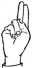 На ћирилици написано ДАВИД КРГА састоји се из 9 слова [?]. Исписано ћириличном једноручном азбуком за глувонеме: